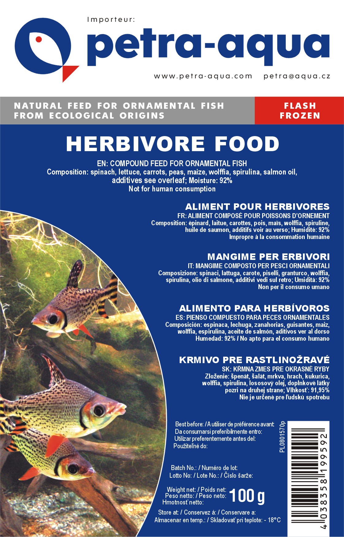 ✔ Podpora zdravého zbarvení – Rostlinné složky obsahují přírodní karotenoidy, které pomáhají zvýraznit přirozené barvy ryb.