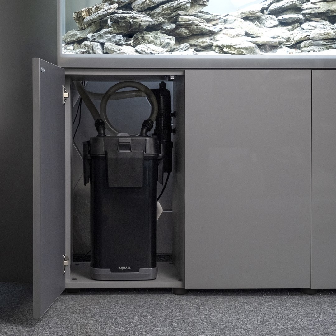 Vnitřek skříně poskytuje dostatek úložného prostoru pro příslušenství a vybavení potřebné k údržbě akvária. Díky dělitelné konstrukci lze navíc její vnitřní prostor snadno uspořádat.