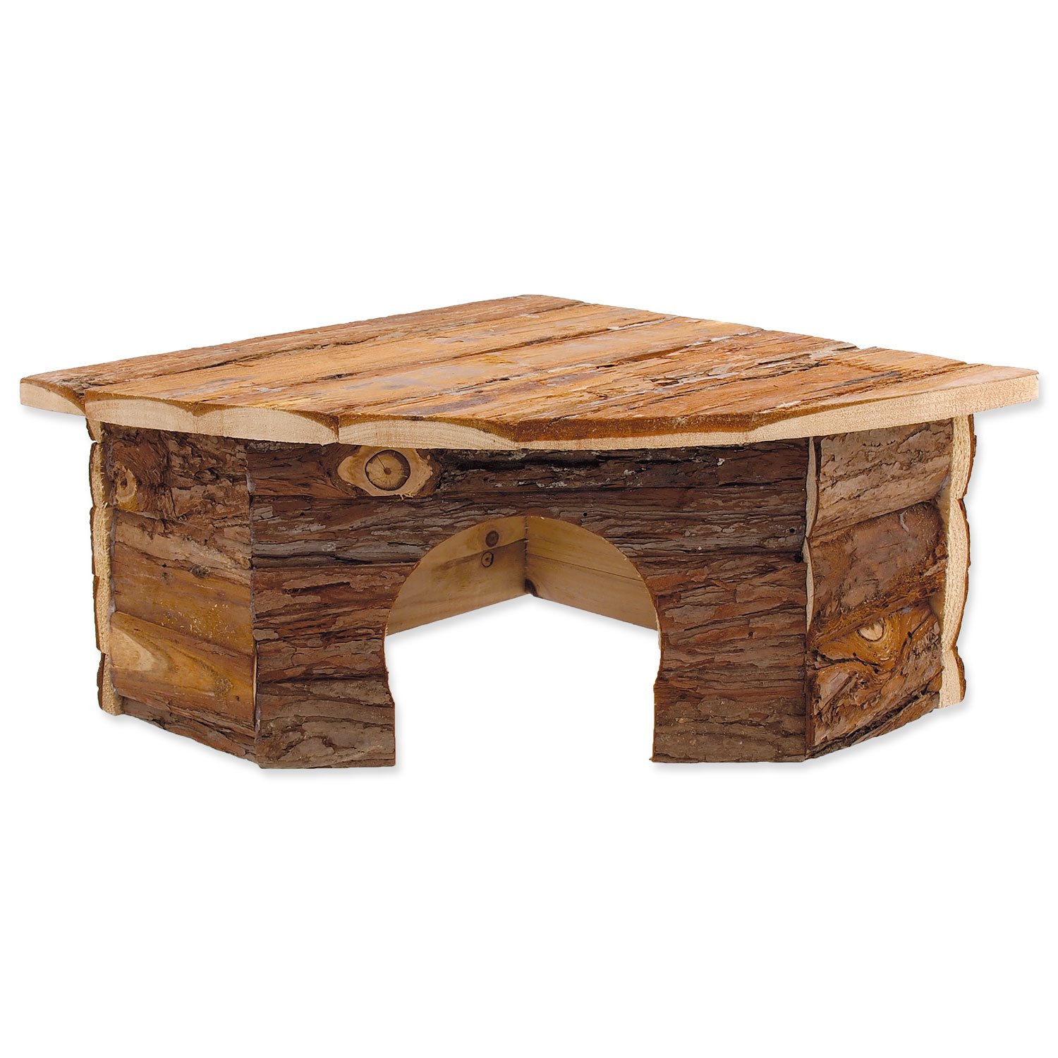 Small Animals Rohový dřevěný domek s kůrou 30 x 30 x 16 cm