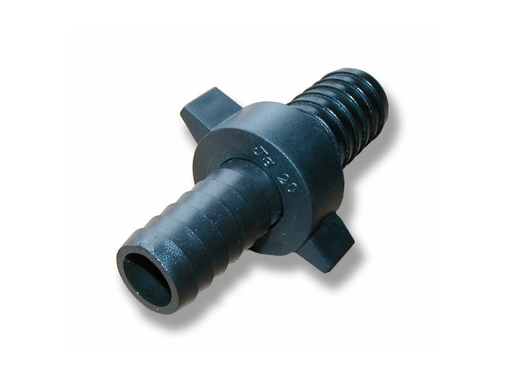 Černá, polypropylenová plastová spojka na hadici - rozebíratelná. 3/4" (19mm).