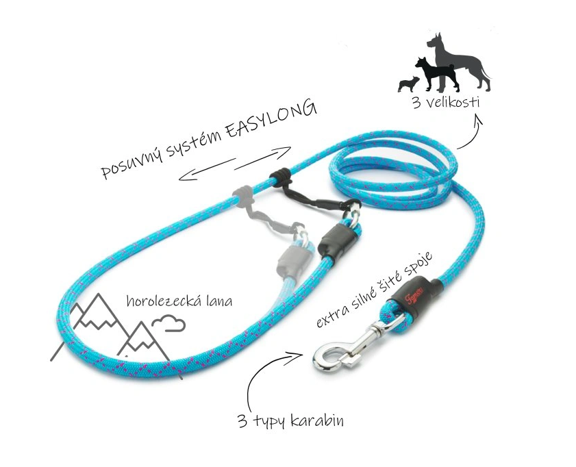 - Patentovaná technologie EASY LONG vám umožní snadným pohybem prodloužit či zkrátit vodítko na vámi požadovanou délku