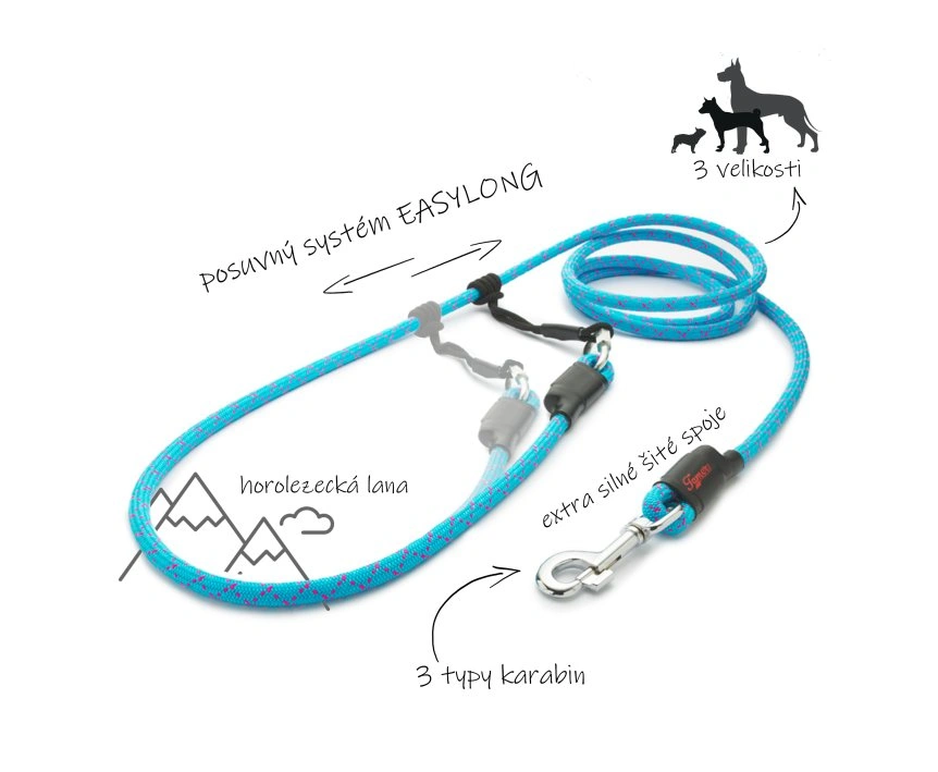 - Patentovaná technologie EASY LONG vám umožní snadným pohybem prodloužit či zkrátit vodítko na vámi požadovanou délku
