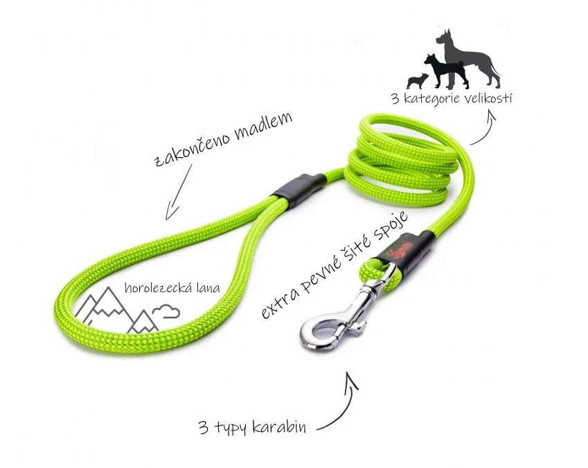 Tamer lanové vodítko Klasik - Mini, mix barev, 1,75 m - modré, zelené a žluté