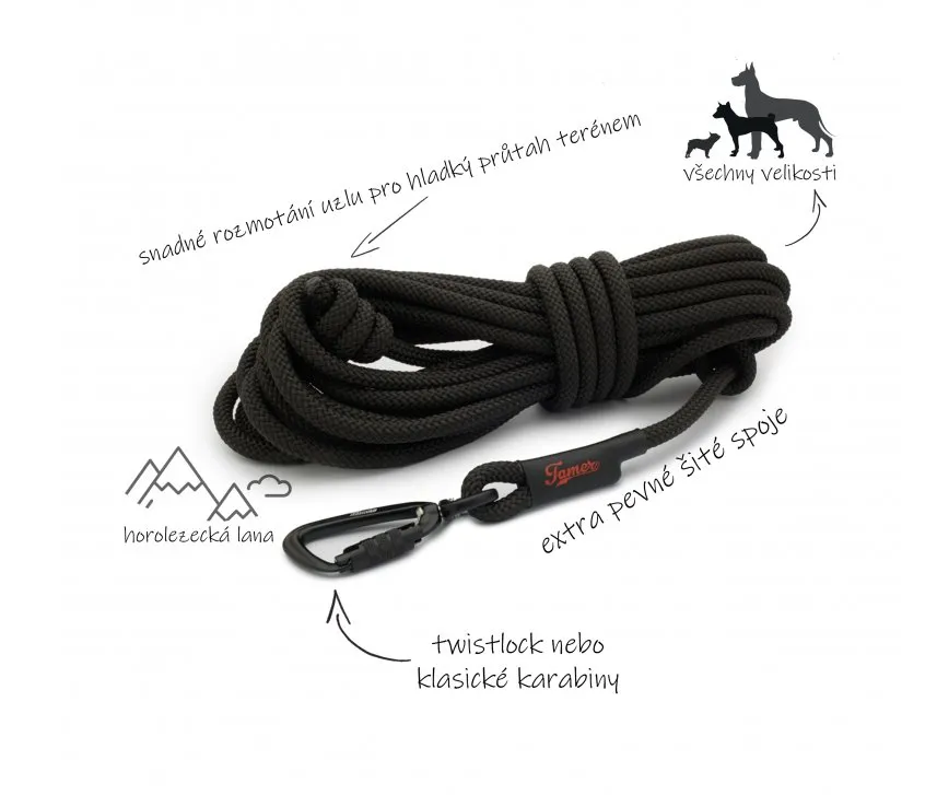Kvalitní, ručně vyráběné stopovací vodítko využijete jak při výcviku, tak při pravidelných procházkách, když chcete vašemu psovi dopřát více volnosti. Verze mini je ideální pro mála, střední, ale především ta nejmenší plemena.Hlavní přednosti