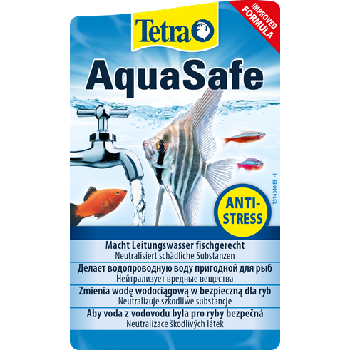 Tetra AquaSafe okamžitě upravuje vodu z vodovodu tak, aby byla bezpečná pro ryby i rostliny. Neutralizuje škodlivé látky jako chlór, chloramin nebo těžké kovy a zároveň chrání žábry a sliznice ryb přírodními extrakty. Vitamíny skupiny B snižují stres, podporují vitalitu ryb a posilují jejich obranyschopnost.