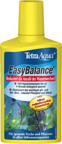 Tetra EasyBalance je chytrý pomocník pro všechny, kdo chtějí snížit frekvenci výměny vody v akváriu. Stabilizuje hodnoty pH a KH, snižuje fosfáty i dusičnany a dodává vitamíny a minerály pro zdravý život ryb. Až 6 měsíců bez nutnosti výměny vody – ideální pro sladkovodní nádrže, včetně těch s měkkou vodou.