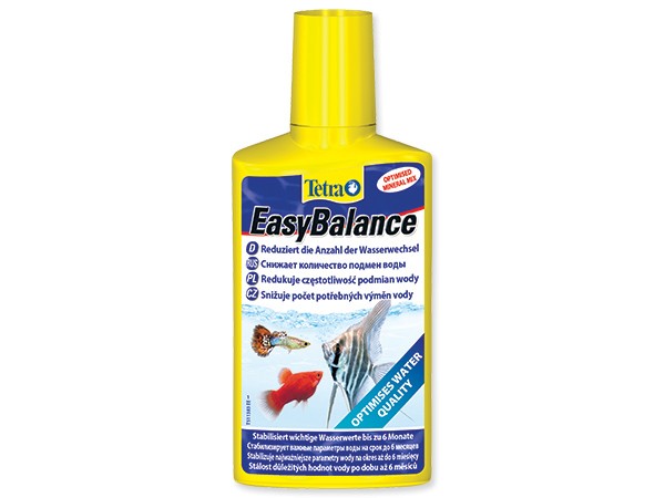 Tetra EasyBalance je chytrý pomocník pro všechny, kdo chtějí snížit frekvenci výměny vody v akváriu. Stabilizuje hodnoty pH a KH, snižuje fosfáty i dusičnany a dodává vitamíny a minerály pro zdravý život ryb. Až 6 měsíců bez nutnosti výměny vody – ideální pro sladkovodní nádrže, včetně těch s měkkou vodou.