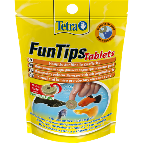 Biologicky vyvážené adhezivní krmivo v tabletách pro tropické ryby. Pro zdravé zábavné krmení a fascinující pestrost.Proč rybám zpestřit stravu krmivem FunTips