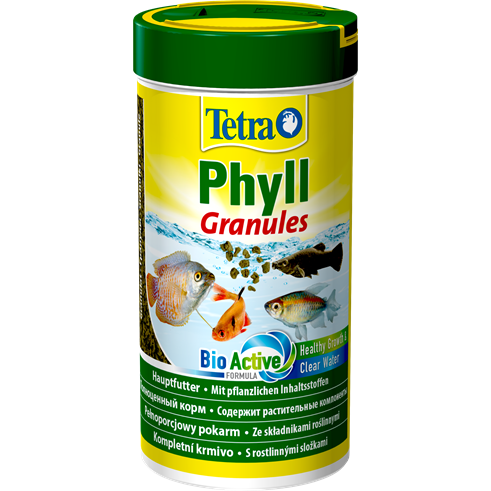 Základní krmivo ve formě granulí pomalu klesajících ke dnu pro každodenní krmení všech akvarijních ryb. Prvotřídní směs vloček s rostlinnými složkami podporuje vitalitu a odolnost.Proč krmit krmivem Tetra Phyll granules?