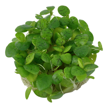 Plovoucí rostlina ve tvaru malých tlustých leknínů s dlouhýmy kořeny