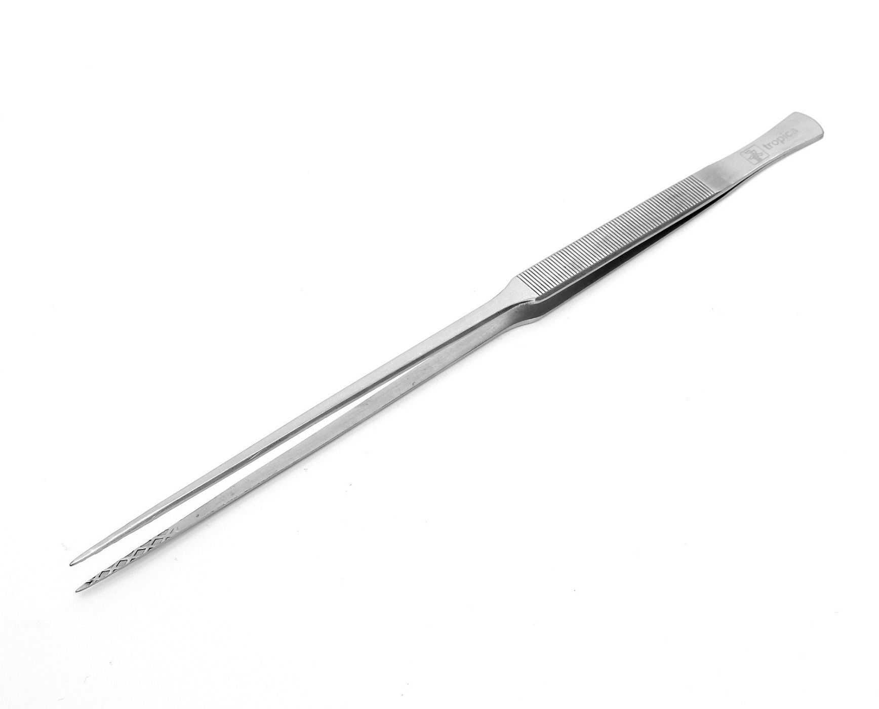 Tenká pinzeta Tropica z řady Plant Care Tools je ideální pomůckou pro detailní výsadbu drobných a kobercových rostlin, jako jsou Hemianthus Cuba, Monte Carlo nebo Eleocharis. Vroubkovaná špička zajistí pevné uchopení i těch nejjemnějších rostlinek, zatímco ergonomické provedení umožní přesné manévrování pod vodou – bez víření substrátu nebo poškození výhonků.
