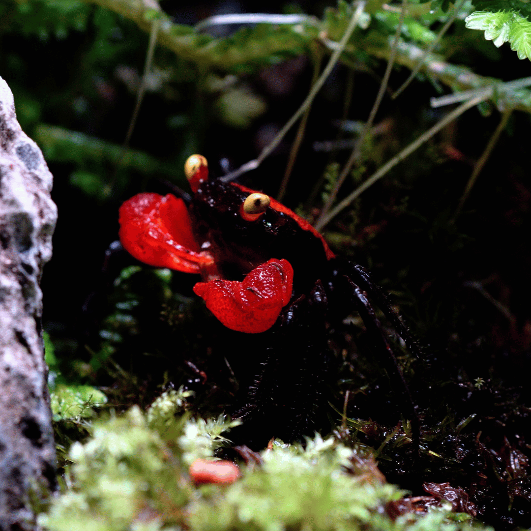je malý, atraktivně zbarvený sladkovodní krab pocházející z jihovýchodní Asie. Tento druh je oblíbený mezi akvaristy a teraristy díky svému výraznému červenému zbarvení a aktivnímu chování. Dorůstá se velikosti 2-3 cm a je vhodný pro paludária s kombinací vody a souše. Je to společenský druh, doporučuje se chovat skupinu několika jedinců. Přestože není agresivní, může docházet k drobným potyčkám mezi samci. Jedná se o nenáročného a zajímavého živočicha, který je vhodný pro zkušenější chovatele.
