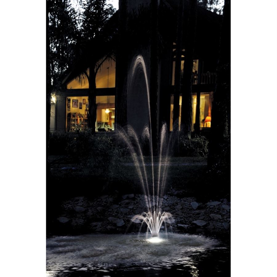 Fontánové osvětlení: Zde najdeme mnoho druhů a tvarů, vždy je ale toto světlo součástí nějakého výtlačného čerpadla, kde na trysce jsou LED diody a mohou být pouze bílé anebo i barevné. Někteří výrobci dodávají k těmto světlům ovladač, aby se barvy dali ovládat. |