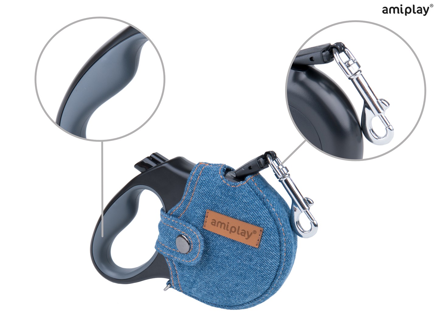 Amiplay Infini Denim S automatické vodítko v pouzdře 3 m - 12 kg modré pro psa