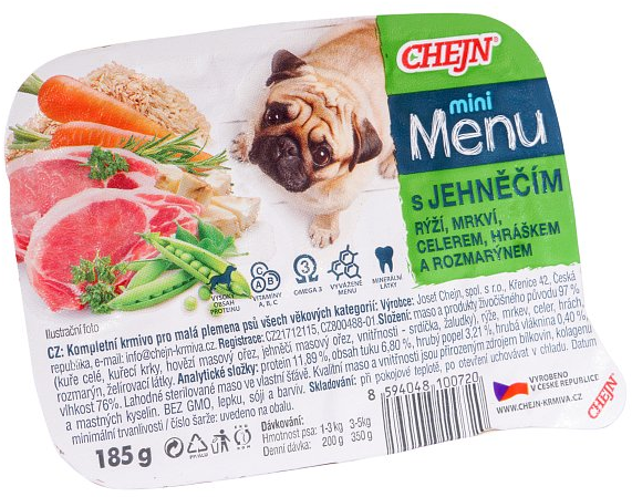 Chejn mini MENU s jehněčím, rýží, mrkví, celerem, hráškem a rozmarýnem 185 g