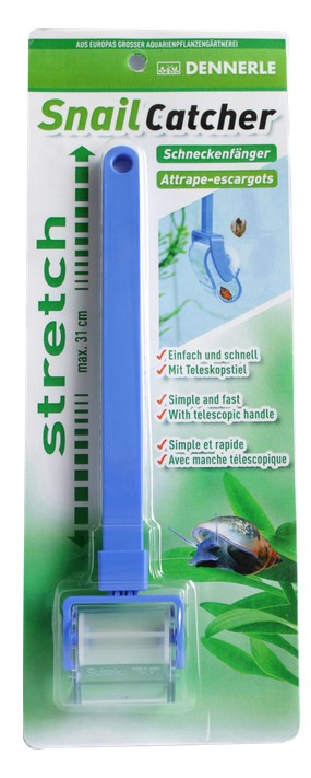 Lapač šneků od značky DENNERLE je praktický nástroj pro snadné a efektivní odstraňování malých šneků z akvárií. Díky teleskopické rukojeti se dostanete pohodlně i do hlubších nádrží bez namáčení rukou. Malé šneky (do velikosti cca 6 mm) jednoduše setřete po skle a přenesete pomocí válcového mechanismu přímo do sběrné komory. Ideální pomocník pro udržení rovnováhy v nádrži bez chemie nebo stresu pro ostatní obyvatele akvária.