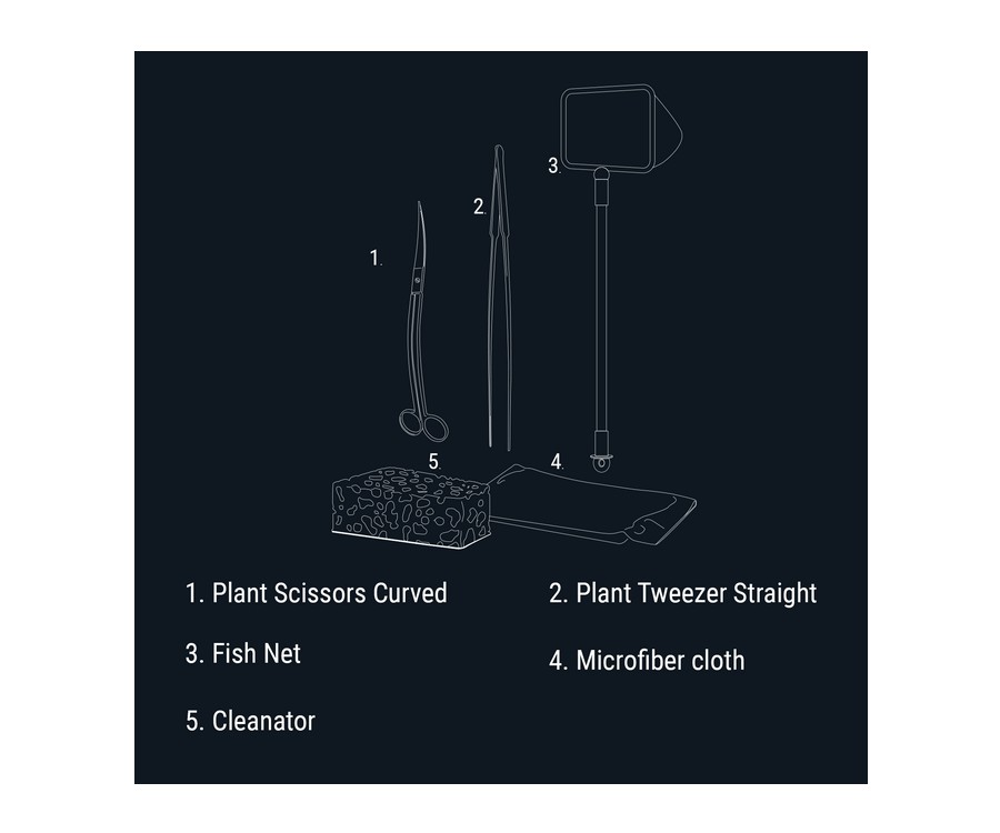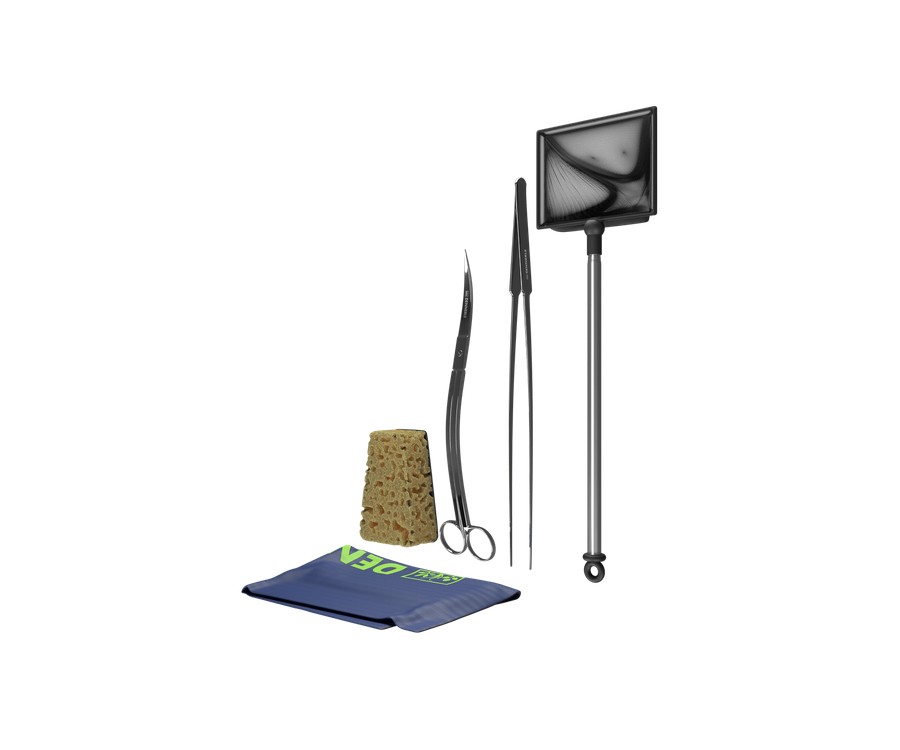 Dennerle Aquarium Care Set obsahuje vše, co potřebujete pro pravidelnou péči o sladkovodní akvárium – ať už jste začátečník, nebo zkušený aquascaper. Zakřivené nůžky a rovná pinzeta z vysoce leštěné nerezové oceli usnadní údržbu rostlin, teleskopická síťka pomůže při manipulaci s rybami a houbička s mikrovláknem zajistí čisté sklo bez škrábanců. Sada spojuje profesionální nástroje s jednoduchým použitím – ideální pro každého, kdo chce mít v nádrži pořádek i estetiku.