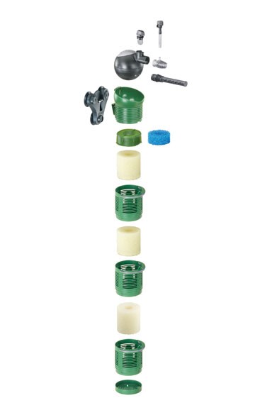 V balení naleznete odpovídající filtrační náplně, filtr je ale vyráběn a určen k chodu nejen s mechanickými, ale i s biologickými náplněmi. To všechno ve spojení s německou kvalitou firmy EHEIM vám dá filtr, který se svým výkonem, vlastnostmi, použitím a výdrží, řadí mezi světovou špičku vnitřních filtrů.