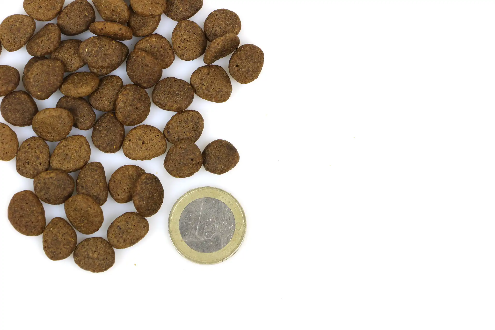 Hmotnost krmné dávky uvedená na obalu krmiva je orientační. Individuálně závisí na plemeni, věku, aktivitě, temperamentu, zátěži, genetických faktorech. Nepřekrmte svého psa v důsledku toho, že se necháte ovlivnit jeho chutí k jídlu a dychtivostí po granulích. Překrmení je nejčastější příčinou poruchy trávení. Denní krmnou dávku rozdělte štěňatům podle věku na 5-3 porce, dospělým jedincům na porce dvě. Krmivo můžete zkrmovat suché nebo navlhčené, navlhčené nenechávejte v misce déle než půl hodiny. Pes musí mít dostatek pitné vody. Na krmivo přecházejte postupně. Přechodu na nové krmivo věnujte několik dní, kdy budete míchat nové se stávajícím.