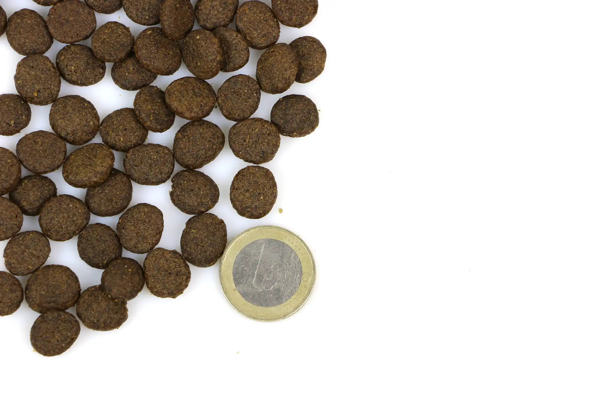 Hmotnost krmné dávky uvedená na obalu krmiva je orientační. Individuálně závisí na plemeni, věku, aktivitě, temperamentu, zátěži, genetických faktorech. Nepřekrmte svého psa v důsledku toho, že se necháte ovlivnit jeho chutí k jídlu a dychtivostí po granulích. Překrmení je nejčastější příčinou poruchy trávení. Denní krmnou dávku rozdělte štěňatům podle věku na 5-3 porce, dospělým jedincům na porce dvě. Krmivo můžete zkrmovat suché nebo navlhčené, navlhčené nenechávejte v misce déle než půl hodiny. Pes musí mít dostatek pitné vody. Na krmivo přecházejte postupně. Přechodu na nové krmivo věnujte několik dní, kdy budete míchat nové se stávajícím.