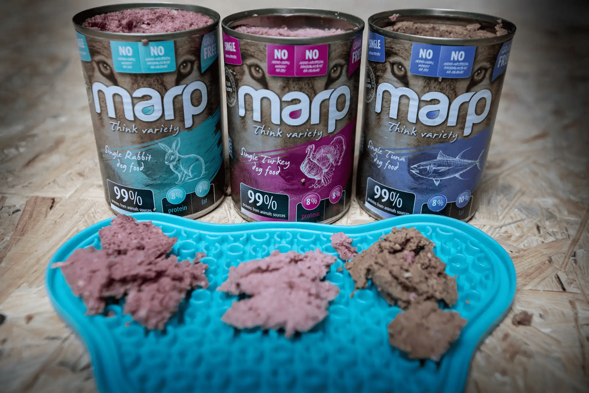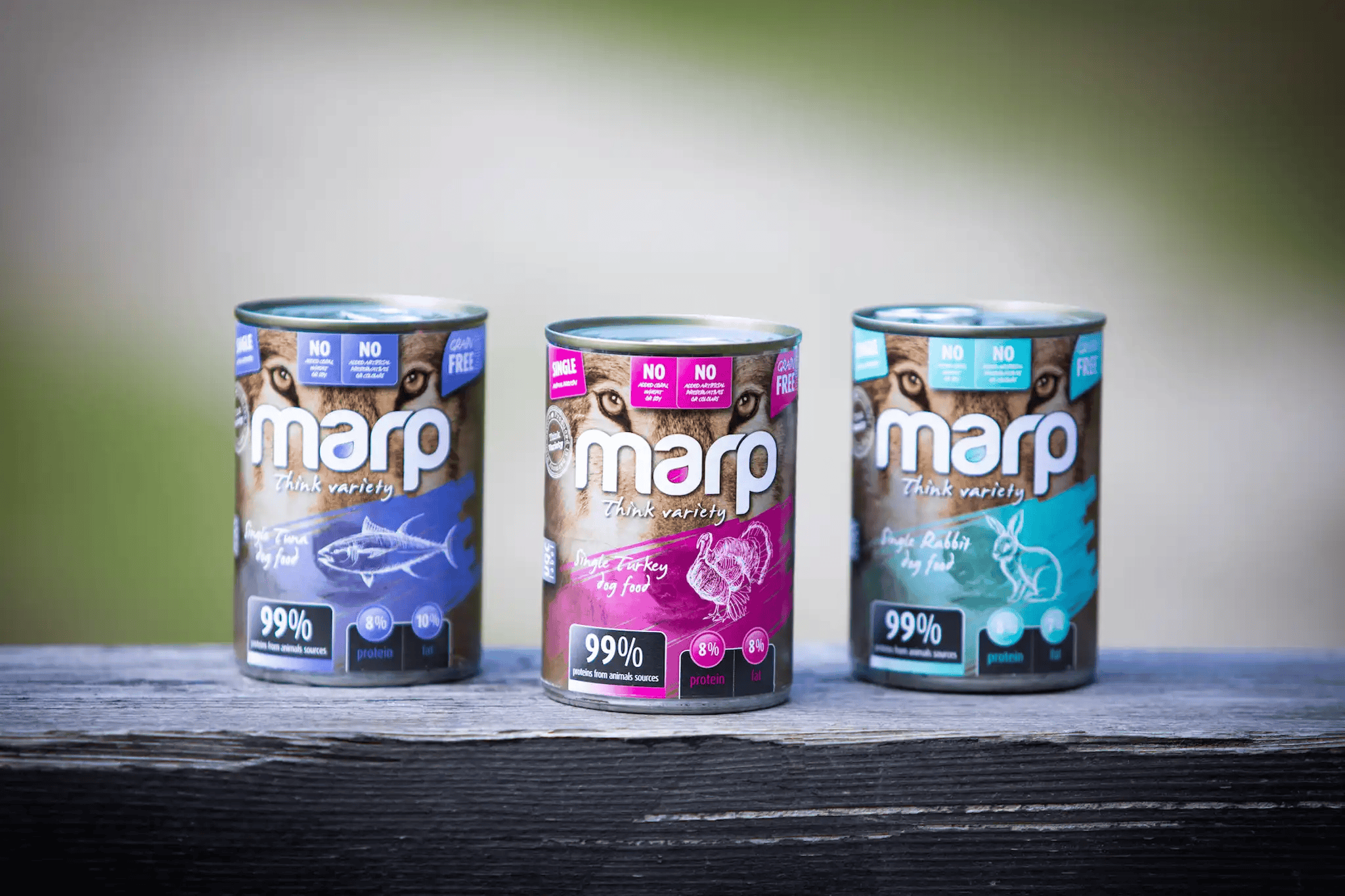 Víme, že pes je masožravec a proto ho jako takového ctíme. Konzervy Marp Variety Single obsahují 99% bílkovin ze živočišných zdrojů - tato konzerva obsahuje pouze tuňáka. Díky tomuto unikátnímu druhu masa jsou vhodné i pro citlivé psy a psy s potravními alergiemi. Konzervy můžete použít samotné, ale velmi dobře se hodí pro přimíchávání do granulí. Nepoužíváme žádné umělé konzervanty, barviva, plnidla apod.