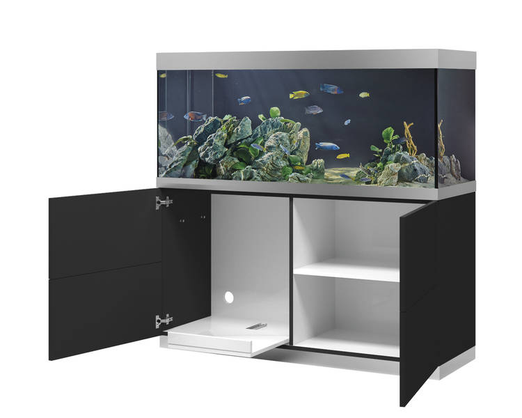 Jednoduchá instalace: Stabilní kovové nohy jsou kdykoliv snadno přístupné přes vnitřek skříňky. Zajišťují bezpečnou a optimální stabilitu akvária