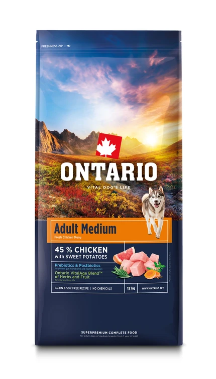 Ontario Adult Medium Chicken & Sweet Potato – zdravá výživa pro dospělé psy středních plemen