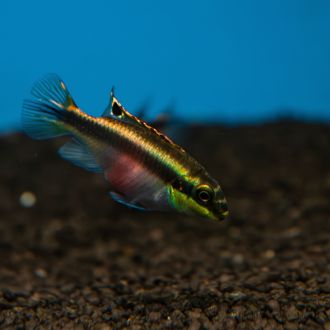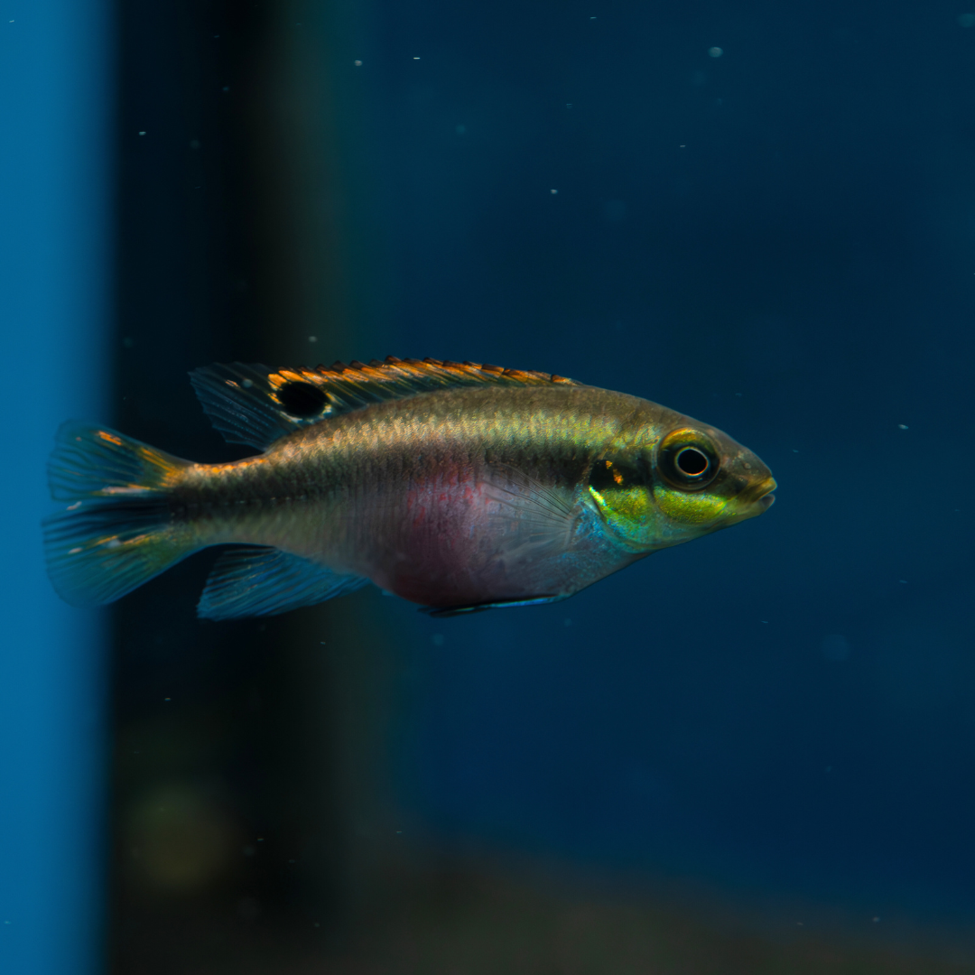 Krásná rybka s velice atraktivně zbarvenou ocasní ploutví. Ideálním zázemím je nádrž s řadou úkrytů a rostlin. Ryba se ráda schovává a vytváří si v úkrytech hnízde. Ačkoliv se jedná o drobou cichlidu tak je velmi mírumilovná a snese se s většinou menších i větších akvarijních ryb.Krmení: