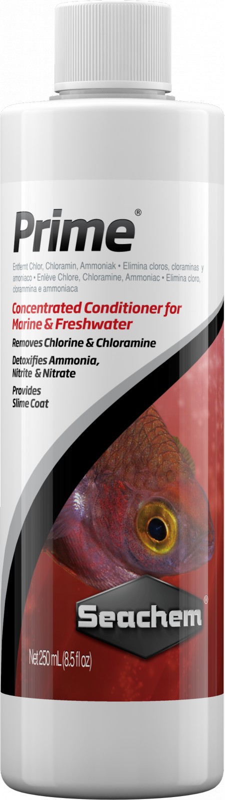Seachem Prime je vysoce koncentrovaný přípravek na úpravu vody, který okamžitě upravuje kohoutkovou vodu tak, aby byla bezpečná pro akvarijní obyvatele. Kromě běžného odstranění chlóru neutralizuje i nebezpečný amoniak, dusitany a dusičnany. Navíc podporuje tvorbu ochranného slizu ryb a chrání je před stresem.