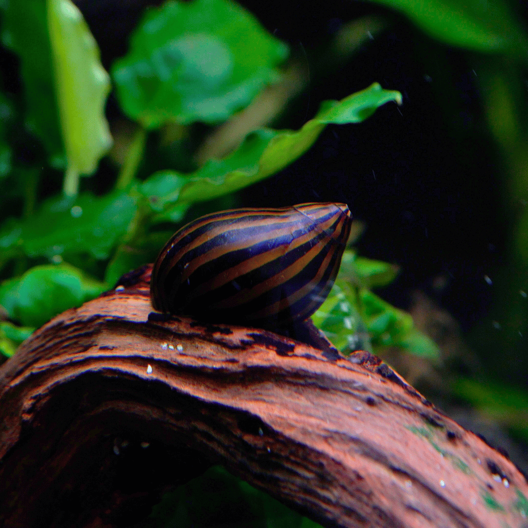 Znám také jako zebří šnek, je oblíbený akvarijní šnek pocházející z tropických oblastí Afriky. Jeho skořápka je výrazná a atraktivní, s černými a žlutými pruhy, které připomínají vzor zebry. Tento šnek je velmi ceněn pro své schopnosti udržovat akvárium čisté, protože se živí řasami, které škrábe z povrchu skel, kamenů a rostlin.
