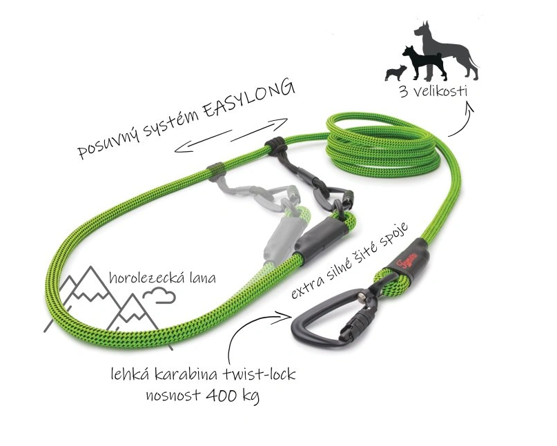 - Patentovaná technologie EASY LONG vám umožní snadným pohybem prodloužit či zkrátit vodítko na vámi požadovanou délku
