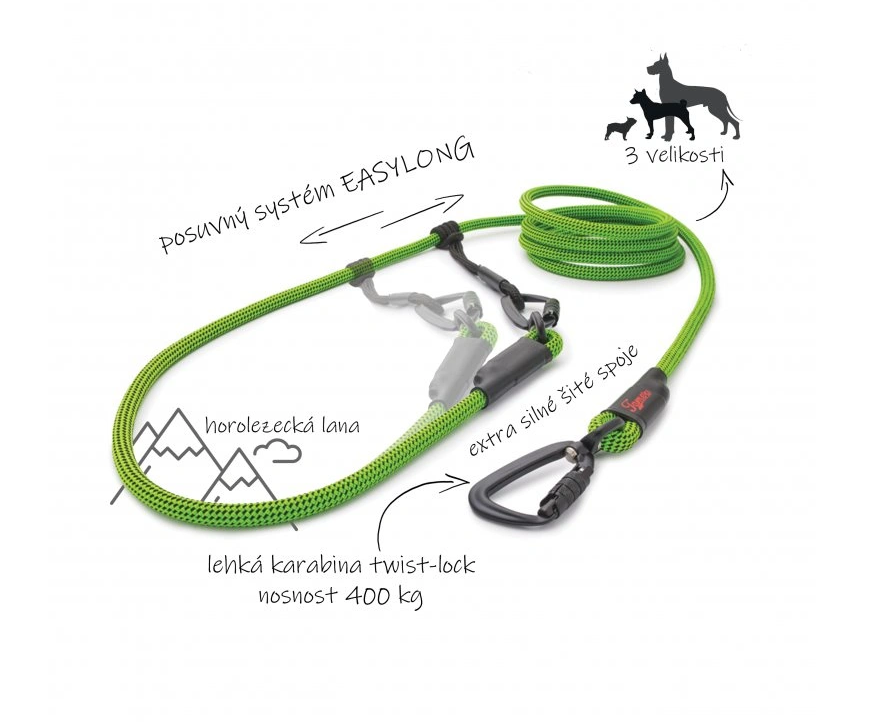 - Patentovaná technologie EASY LONG vám umožní snadným pohybem prodloužit či zkrátit vodítko na vámi požadovanou délku