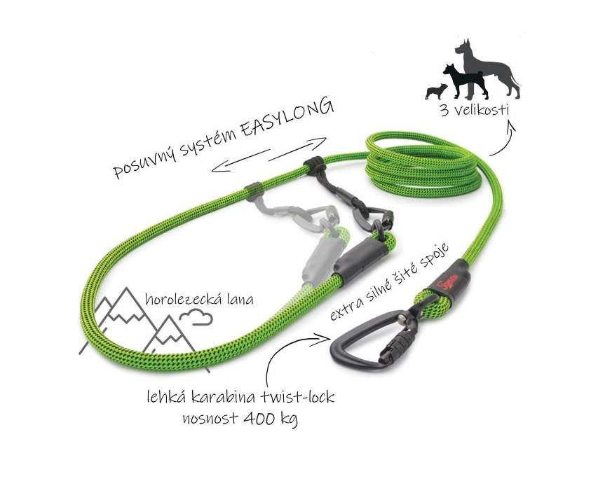- Patentovaná technologie EASY LONG vám umožní snadným pohybem prodloužit či zkrátit vodítko na vámi požadovanou délku