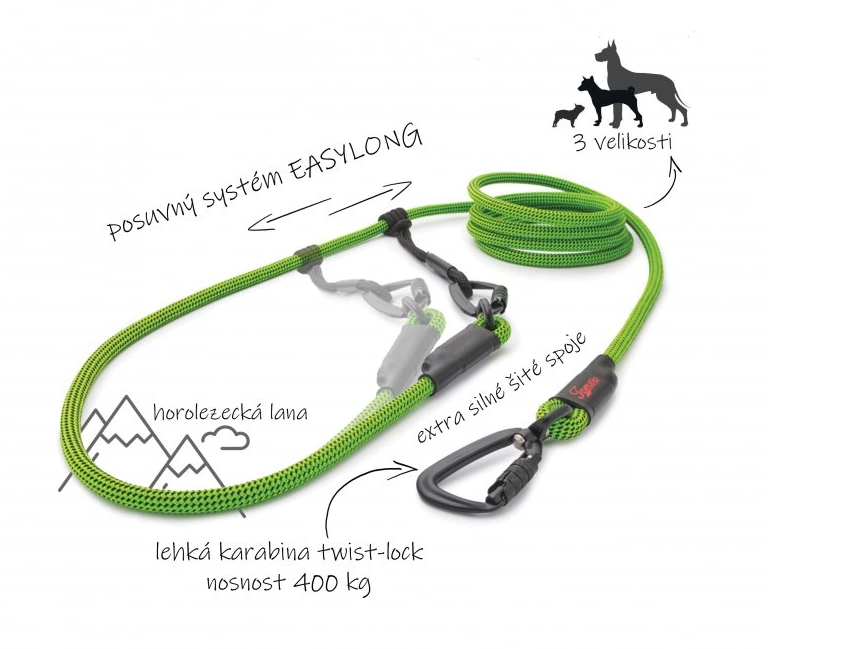 - Patentovaná technologie EASY LONG vám umožní snadným pohybem prodloužit či zkrátit vodítko na vámi požadovanou délku
