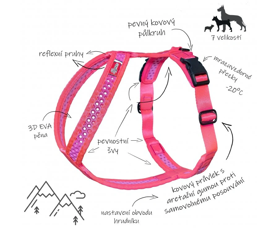 - Tvar (Y) kolem krku poskytuje ideální rozložení tahu a zároveň neomezuje ramena a dech vašeho parťáka